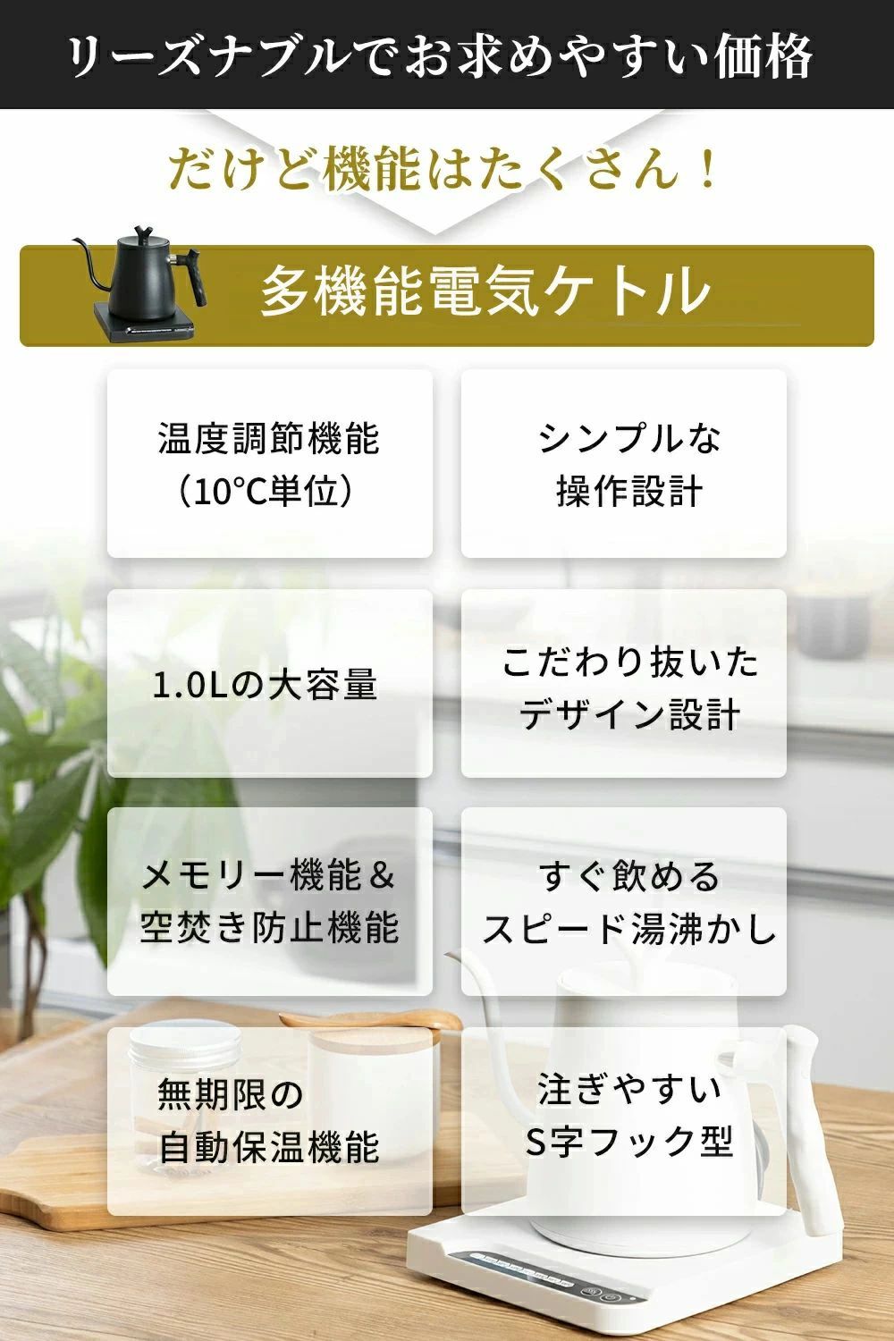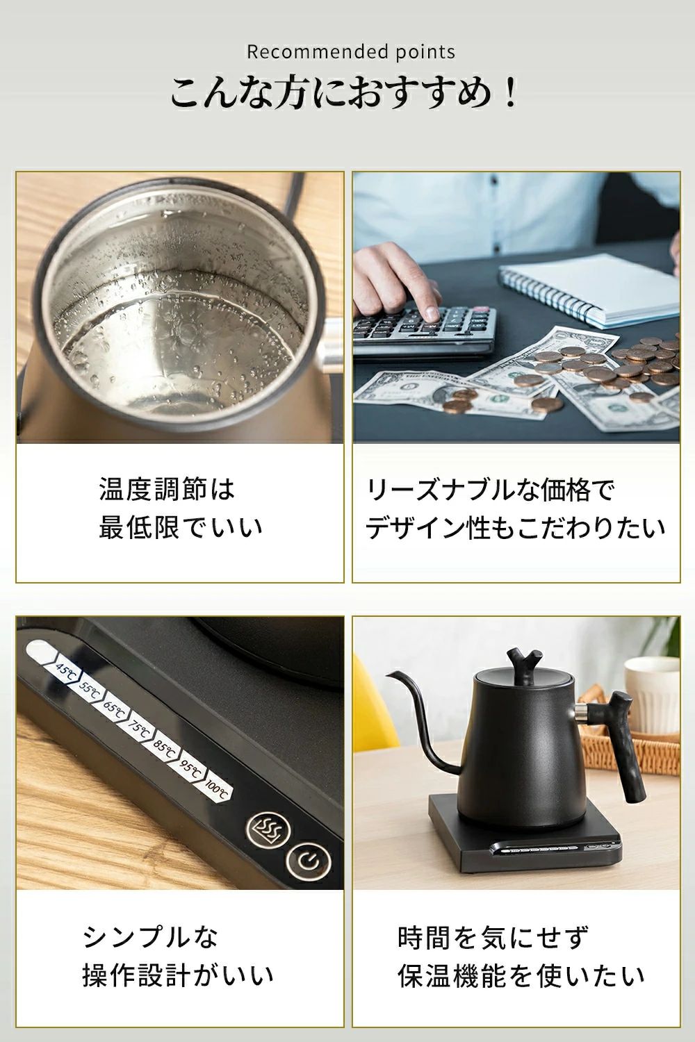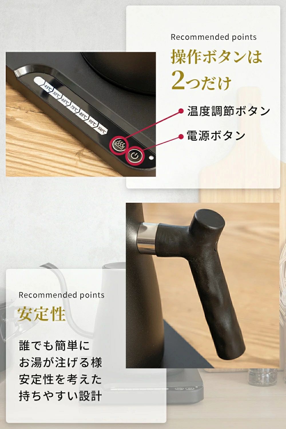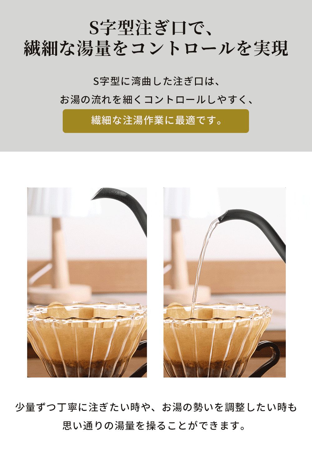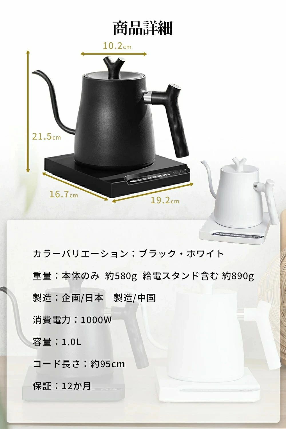 細口 ハンドドリップケトル おしゃれ ブラック ホワイト