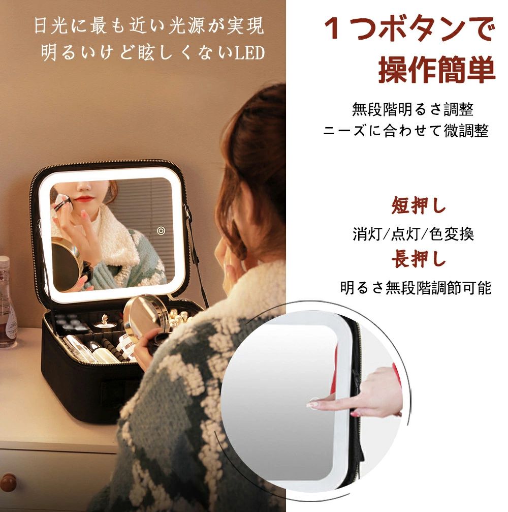 化粧ボックス ミラー付き 化粧箱 大容 ブラック ピンク ホワイト カーキ