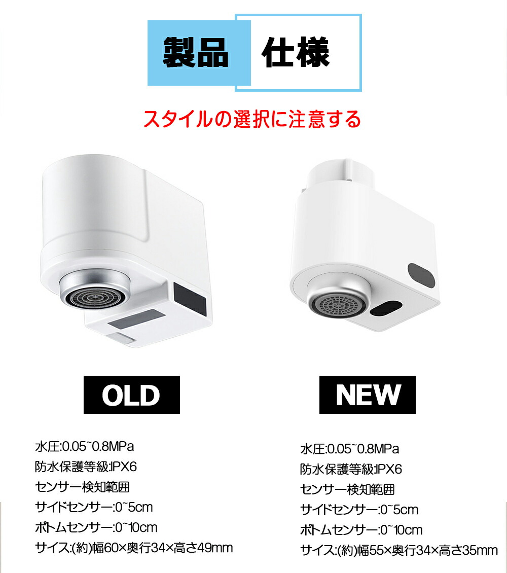 自動水栓 蛇口 後付け 自動センサー水 OLD NEW