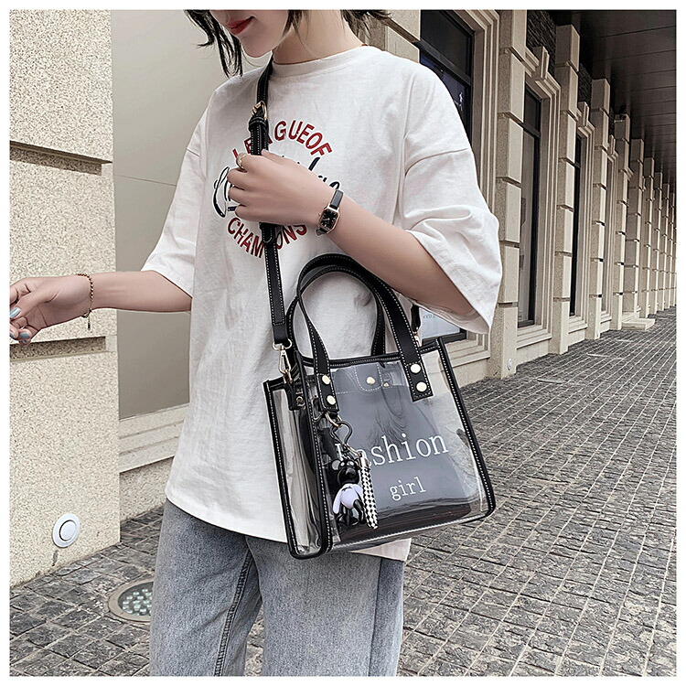 クリアバッグ レディース ハンドバッグ ショルダー トートバッグ 斜め掛け チェーン付き リボン可愛い エコバッグ 可愛い バッグ フォーマル 卒業式 入園式