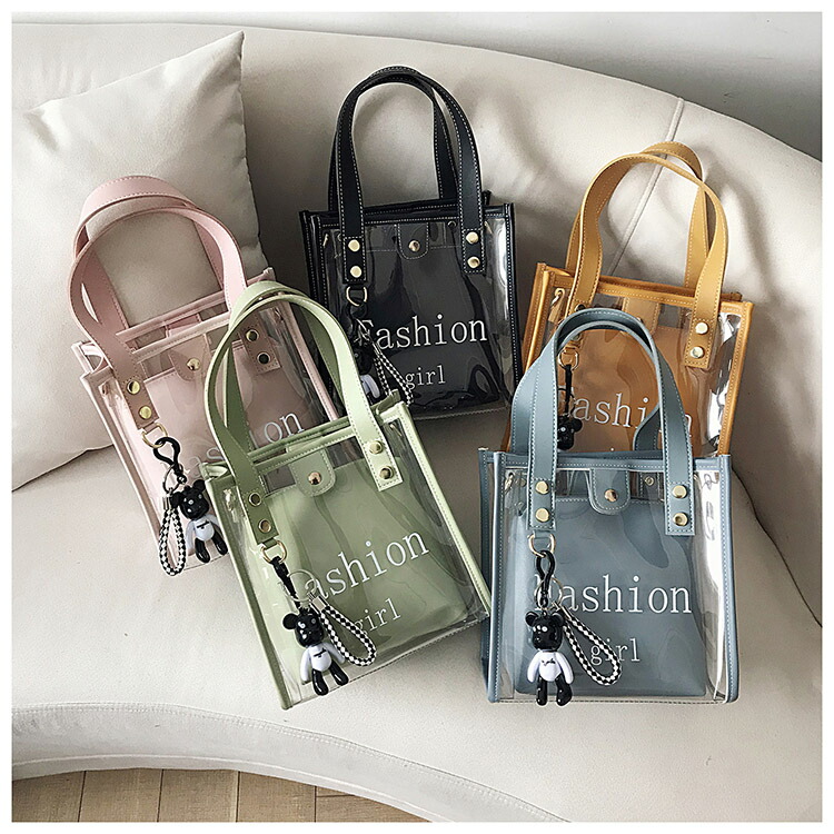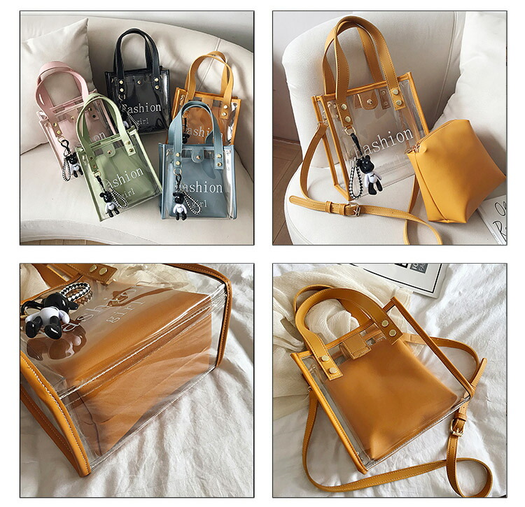 クリアバッグ レディース ハンドバッグ バッグ 小物 ブランド雑貨 新作 ブラック イエロー ピンク ブルー グリーン