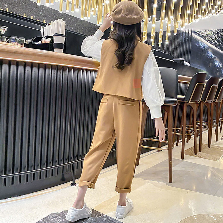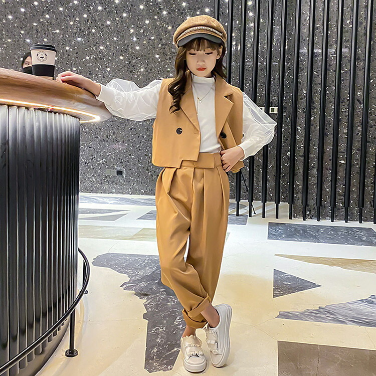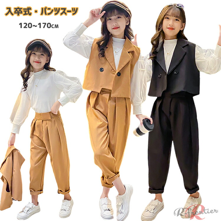韓国 卒業式 パンツスーツ 女の子 パ キッズ ベビー マタニティ 豊富な品揃え ブラック-(ベスト+パンツ) ブラック(ベスト+パンツ+ブラウス カーキ(ベスト+パンツ) カーキ-(ベスト+パンツ+ブラウス) 120cm 130cm 140cm 150cm 160cm 170cm