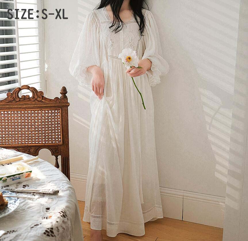 七分袖 体型カバー シンプル マキシ丈 レディース ナイトウェア ルームウェア ネグリジェ 早い者勝ち 155(S) 160(M) 165(L) 170(XL)
