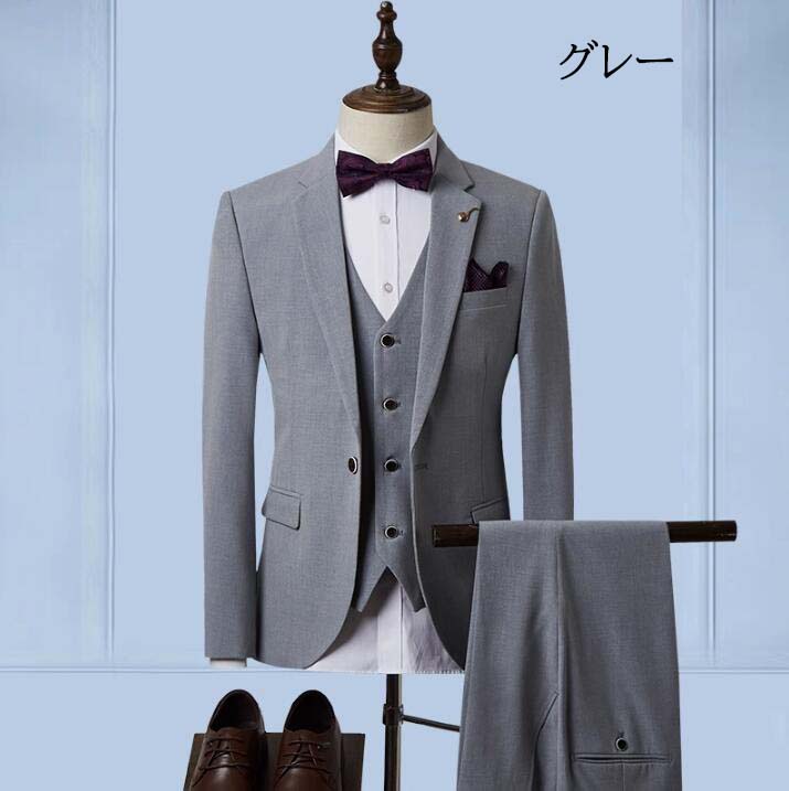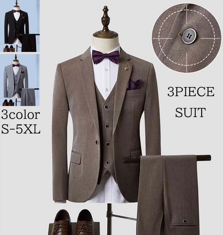 メンズスーツ 3点セット 礼服 上質 メンズファッション 通販 S M L XL XXL 3XL 4XL 5XL キャメル ブラック グレー