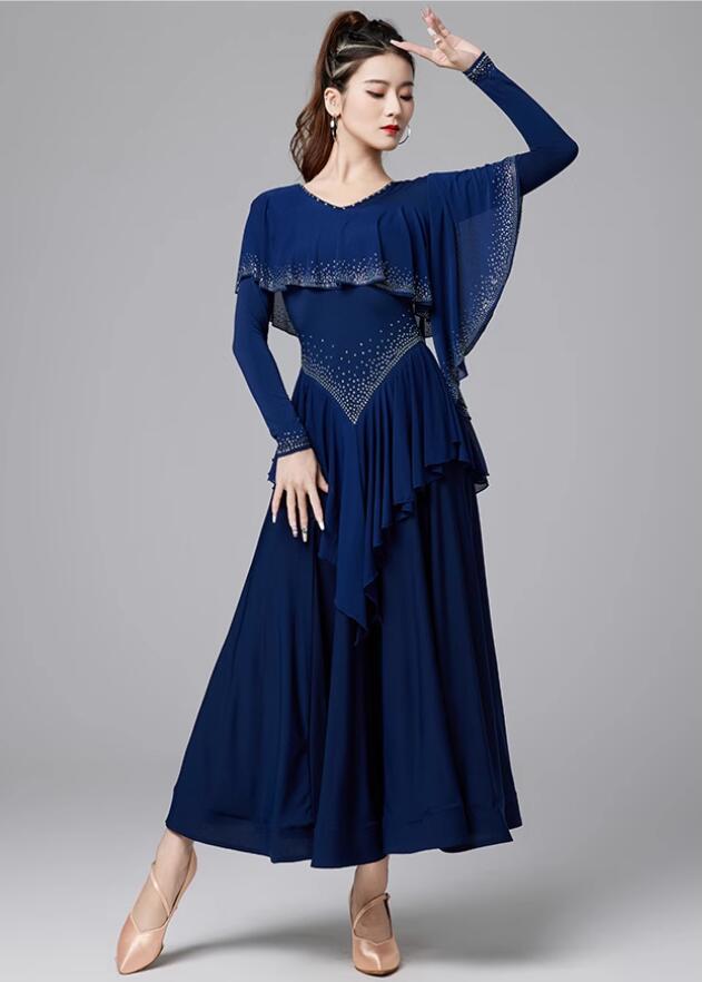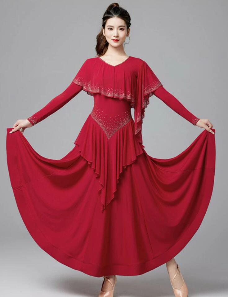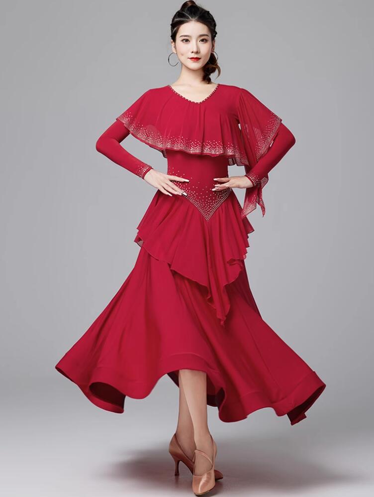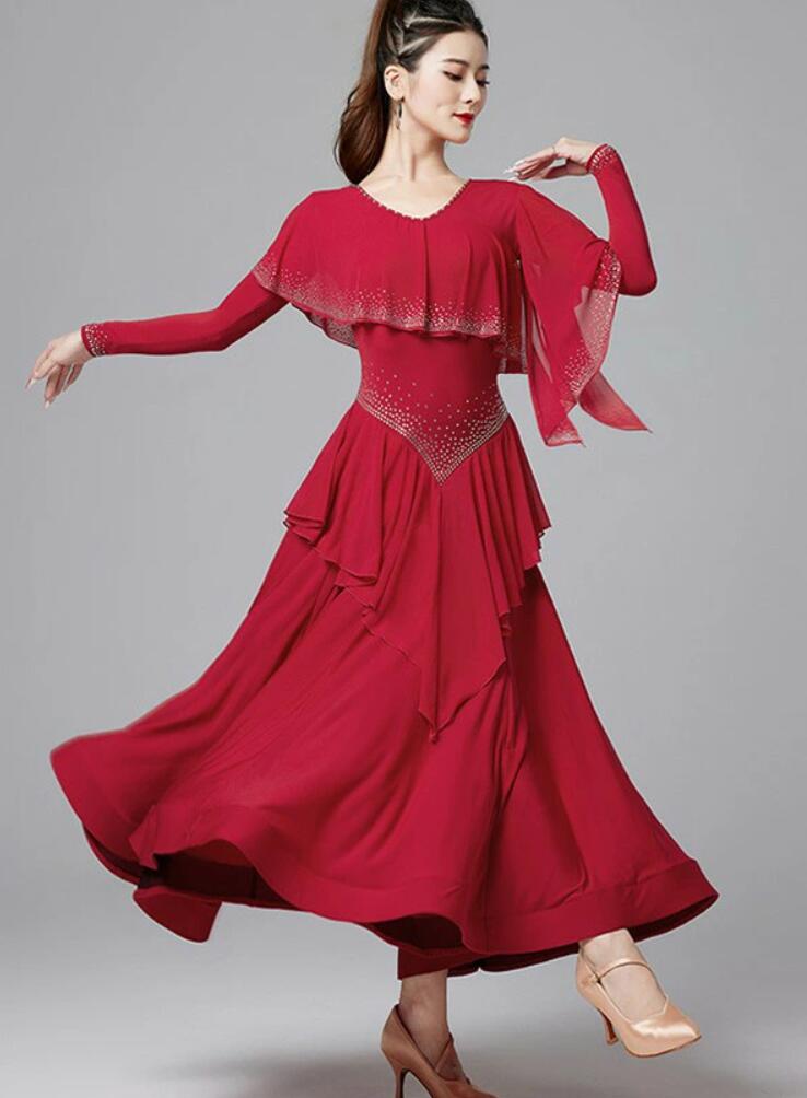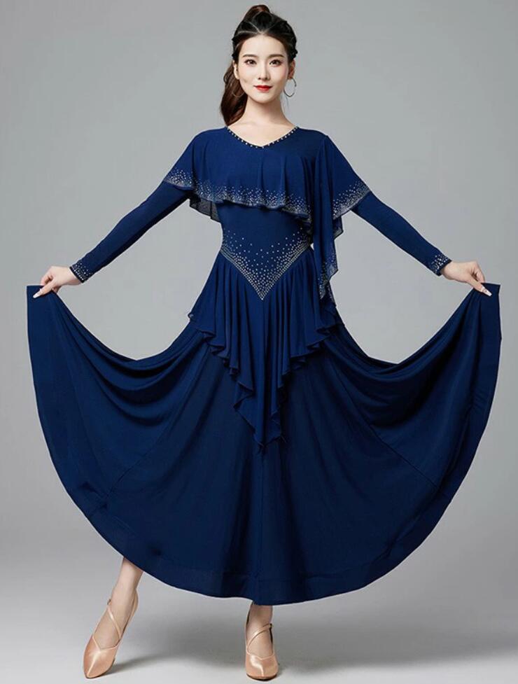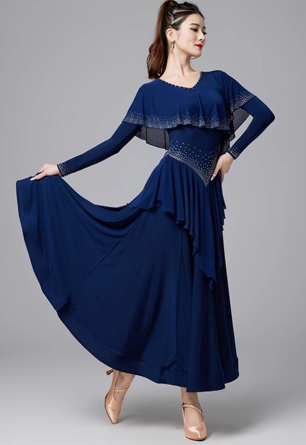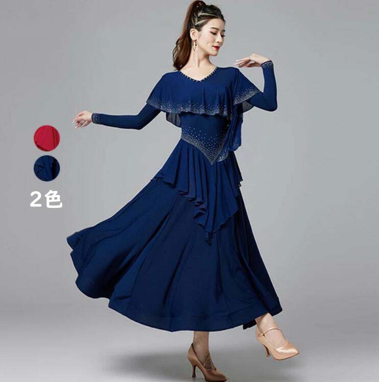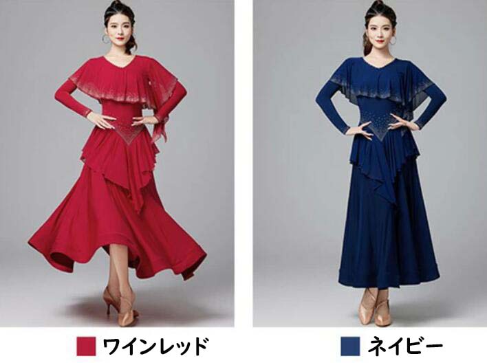 社交ダンスドレス キラキラ ゴージャス 体操 ダンス 社交ダンス ウェア 通販 M L XL XXL ワインレッド ネイビー