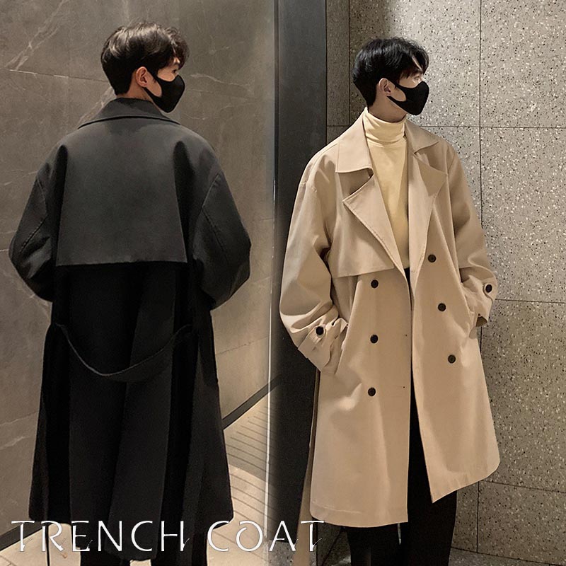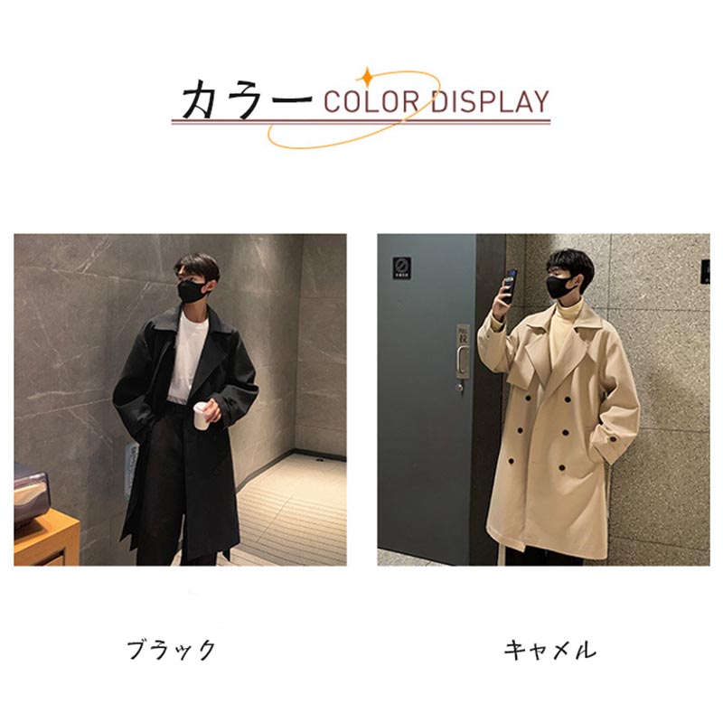 メンズ トレンチコート スプリングジャ コート ジャケット 新作 ブラック キャメル M L XL 2XL 3XL