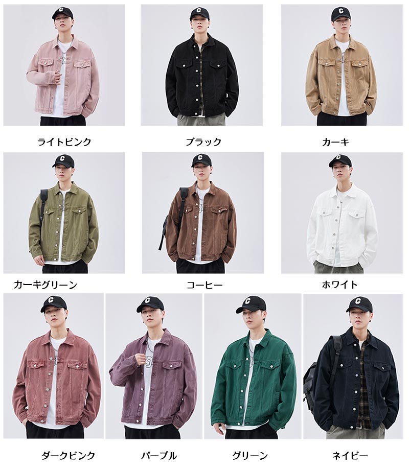デニムジャケット メンズジャケット メ メンズファッション 続々入荷中 ライトピンク ブラック カーキ カーキグリーン コーヒー ホワイト ダークピンク パープル グリーン ネイビー S M L XL 2XL 3XL