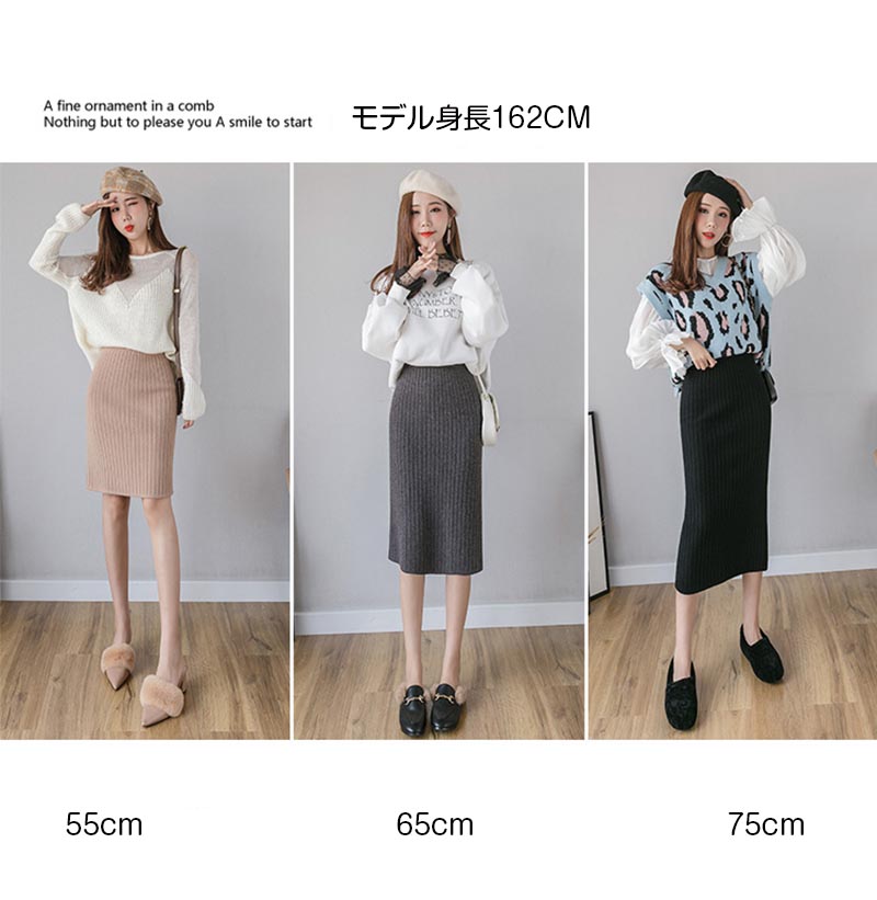 ニットスカート タイトスカート 55 レディースファッション 特集 S-55CM M-65CM L-75CM ブラック グレー コーヒー キャメル ベージュ