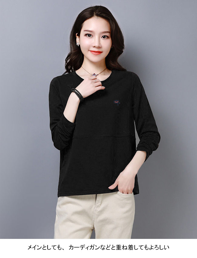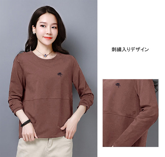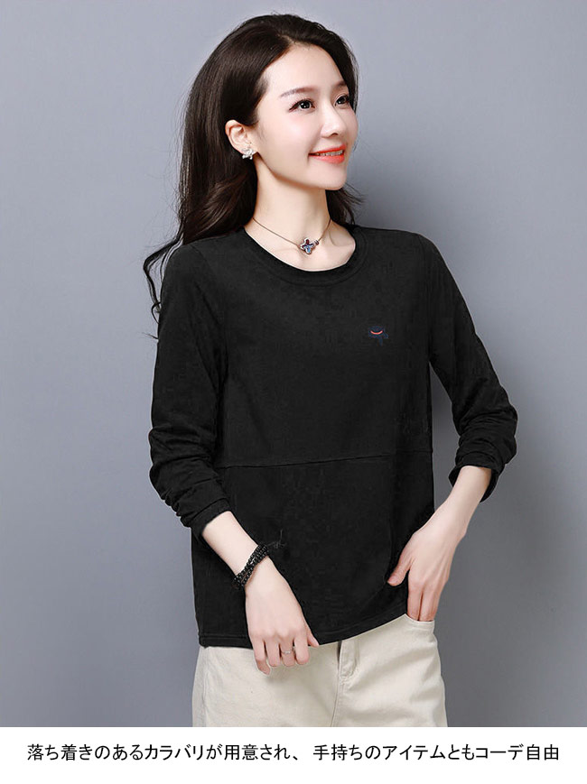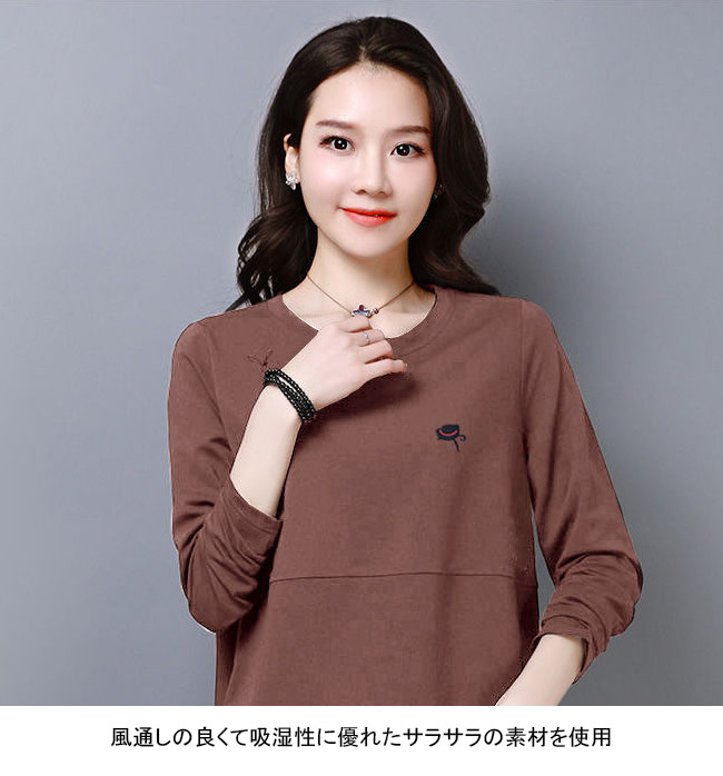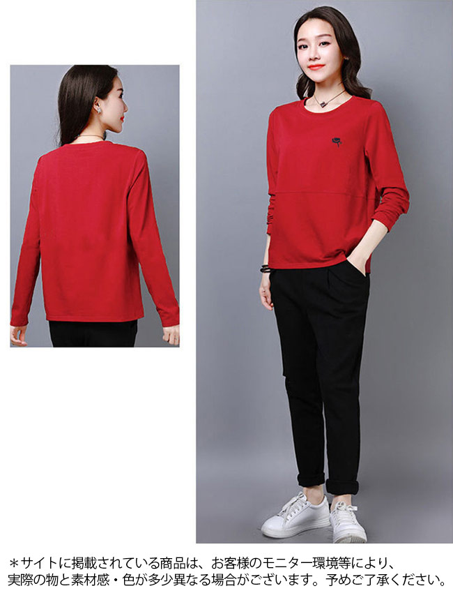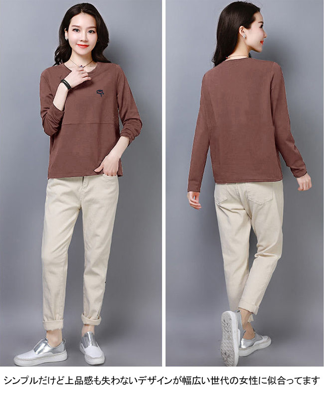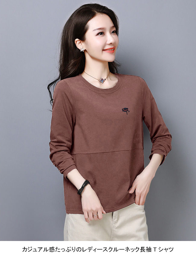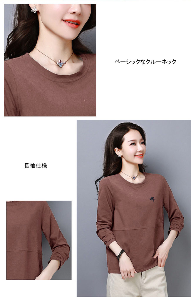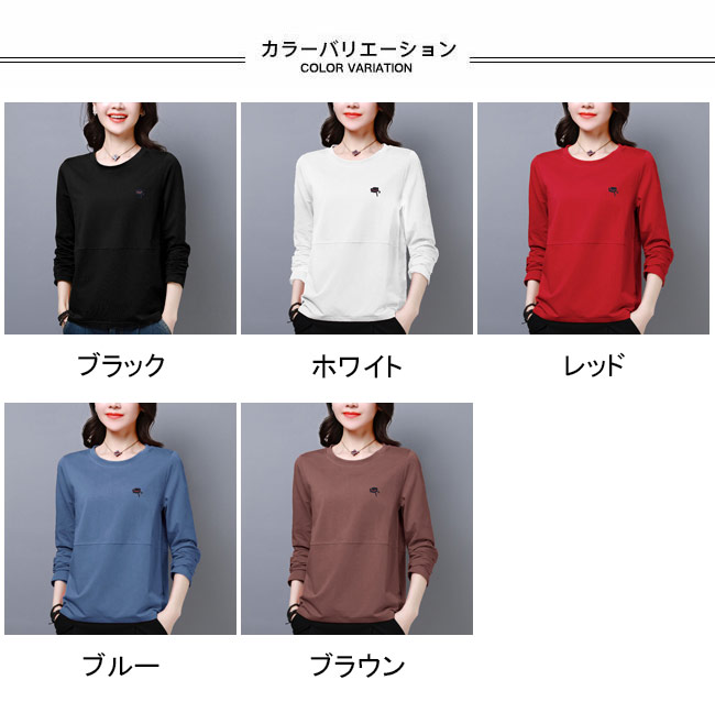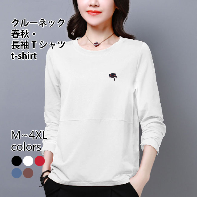 長袖Tシャツ 春秋 レディース Tシャ トップス Tシャツ カットソー 人気 M L XL 2XL 3XL 4XL ブラック ホワイト レッド ブルー ブラウン