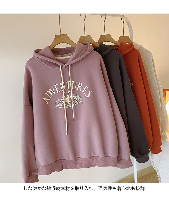 パーカー レディース 長袖 トップス レディースファッション 新作 ライトグレー パープル オレンジ ダークグレー