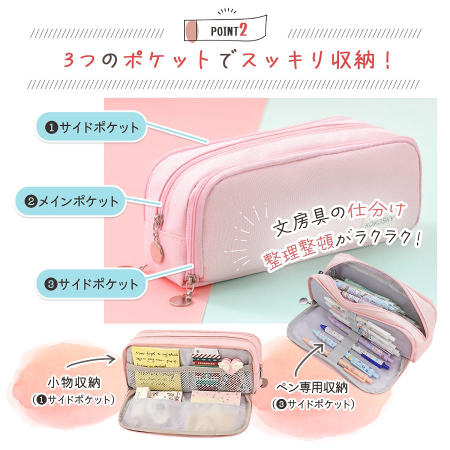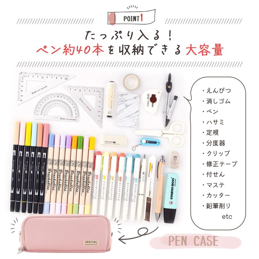 ペンケース 筆箱 大容量 収納 おしゃ 日用品雑貨 文房具 手芸 特集 ブルー ピンク パープル グリーン イエロー ネイビー ブラック