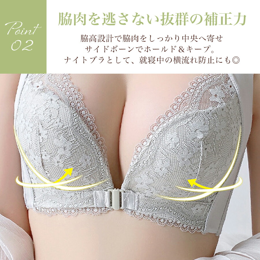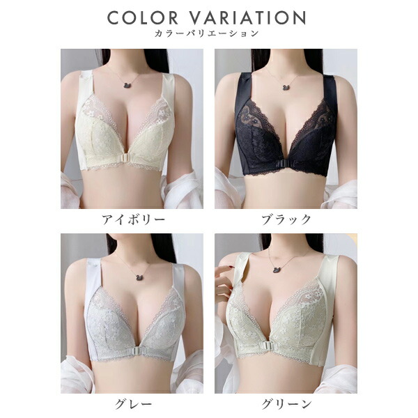 フロントホック ブラ ノンワイヤー シ レディース インナー 下着 ブラジャー 通販 アイボリー ブラック グレー グリーン 34/75BC 36/80BC 38/85BC 40/90BC