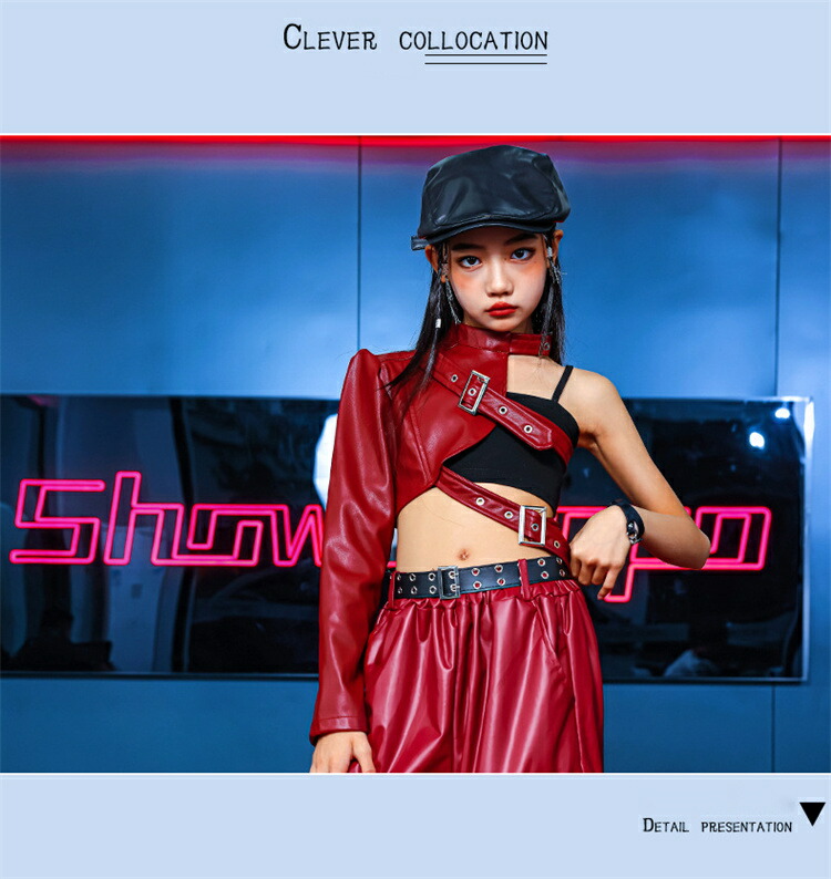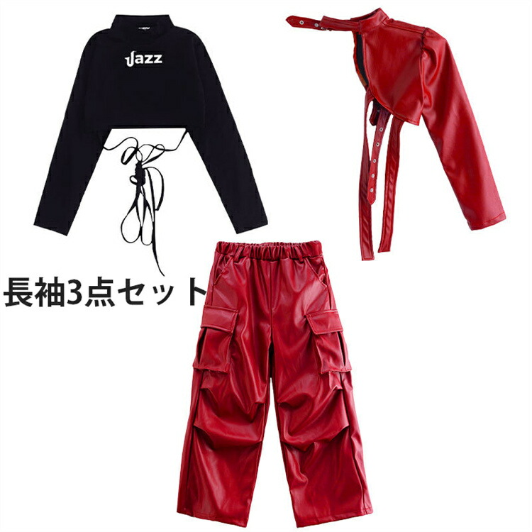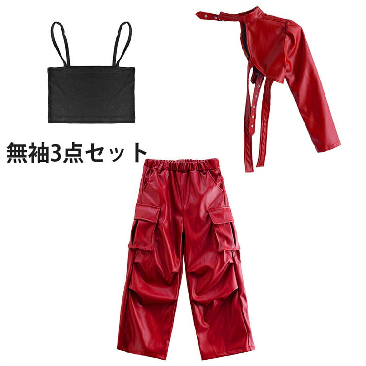 女の子 レザー キッズ ダンス衣装 へ キッズ ベビー マタニティ 新登場! 長袖3点セット 無袖3点セット 110cm 120cm 130cm 140cm 150cm 160cm 170cm 180cm