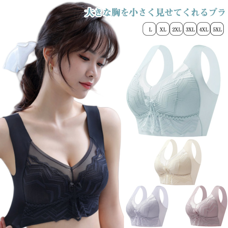 胸を小さく見せるブラ ノンワイヤー 小 レディース インナー 下着 ブラジャー 特集 ミントグリーン シャンパンベージュ スモーキーパープル あずき色 クラシックブラック L XL 2XL 3XL 4XL 5XL