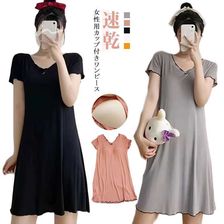 シンプル カップ付き 室内着 ルームウ ピンク グレー オレンジ ブラック ベージュ M L XL 2L 3L