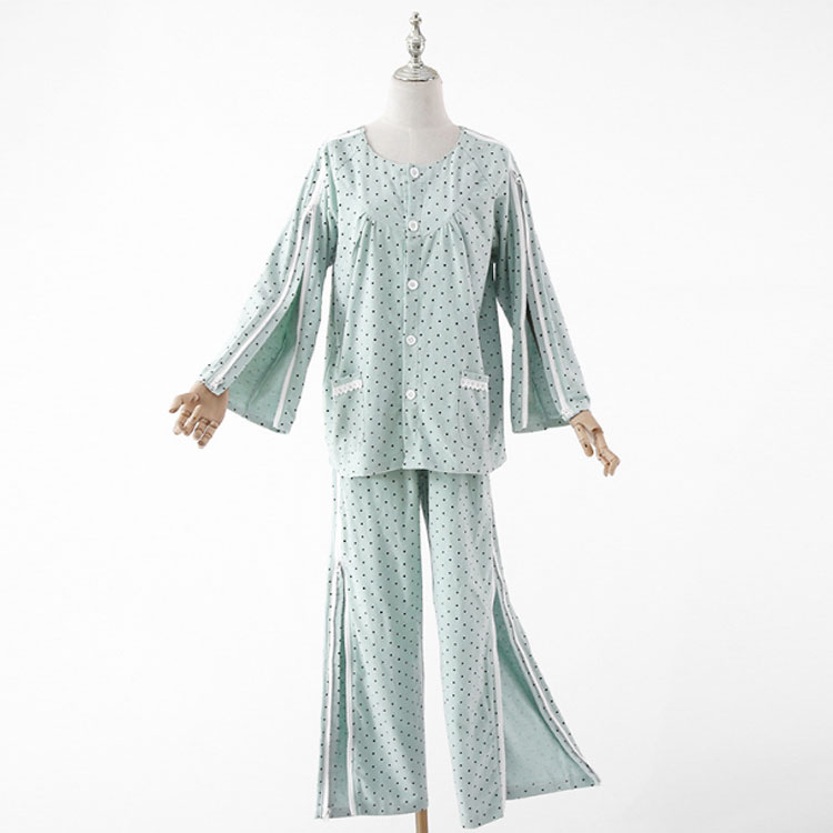 介護パジャマ 女性 上下セット レディ グリーン ピンク M L XL 2XL