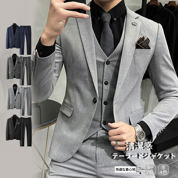 スリーピーススーツセット 男性用スーツ メンズスーツ スリムタイプ 四季通用