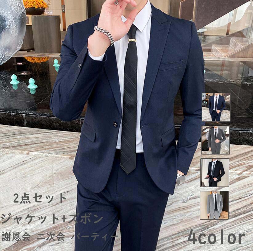オールシーズン スリムスーツ スーツ 2点セット ジャケット+ズボン 春夏秋冬 結婚式 新生活 披露宴 パーティー 出勤 出張 二次会 フォーマル おしゃれ お誕生日 プレゼント 記念日