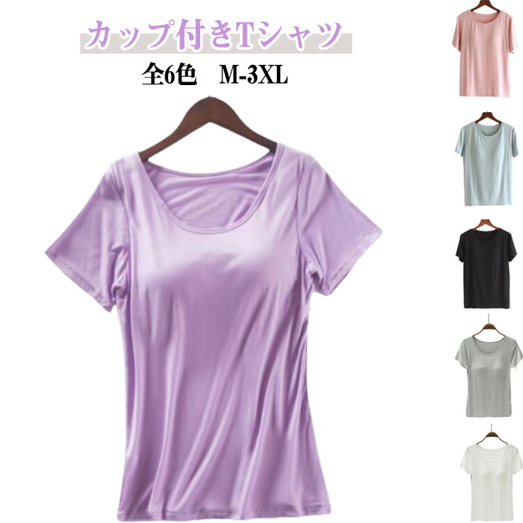 カップ付き Tシャツ トップス ラウンドネック アンダーフリー 半袖 柔らか ブラトップ おしゃれ パット付半袖Tシャツ ルームウェア レディース カットソー Uネック 締め付けない インナー 無地