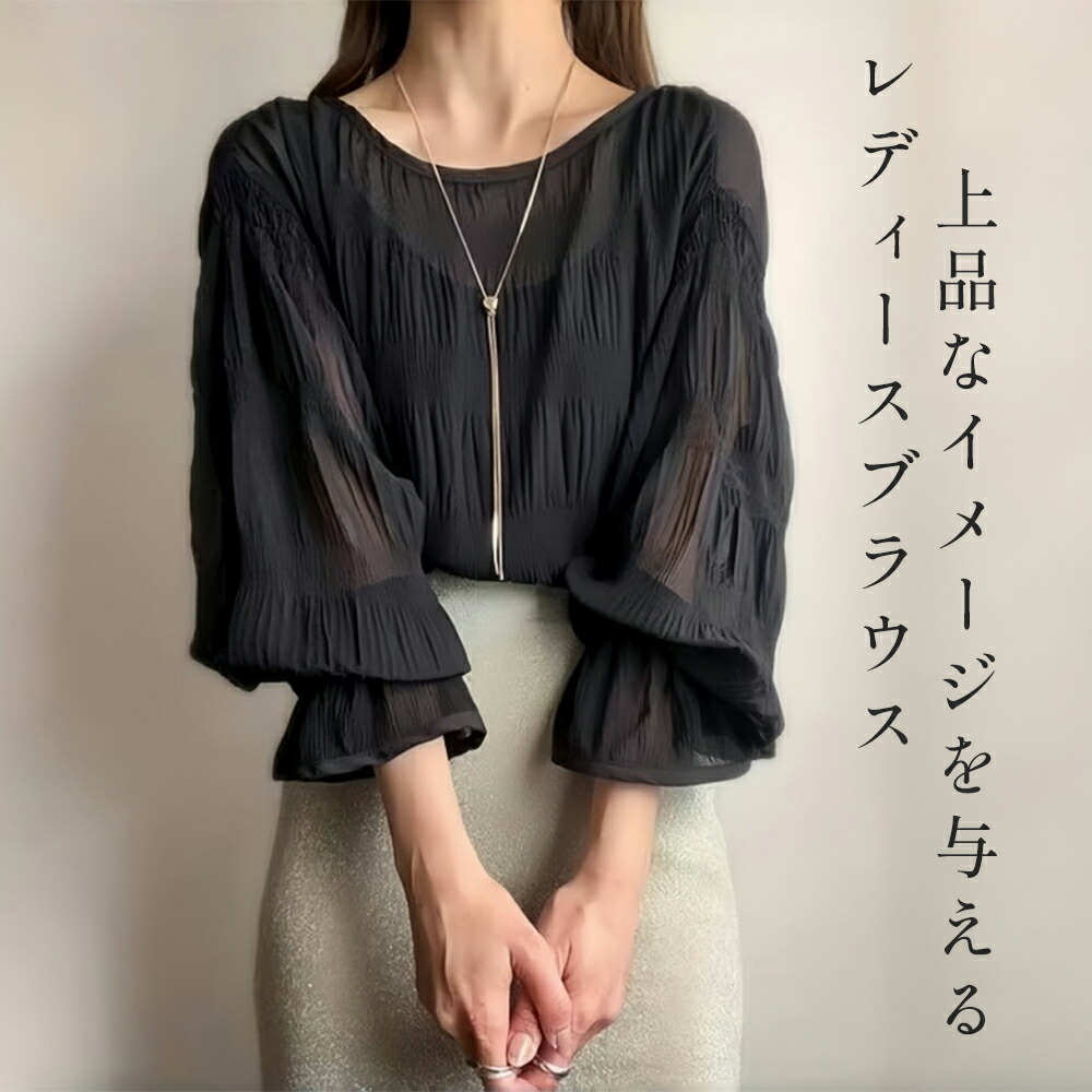 ブラウス シャツ Tシャツ レディース トップス 無地 ラウンドネック 上品 高級感 春夏秋 大人カジュアル おしゃれ 通勤用 体型カバー 涼感 フレアスリーブ 新作 着痩せ
