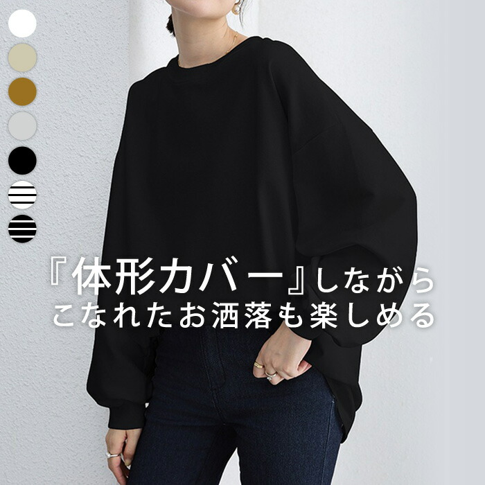 トップス レディース 秋 冬 秋冬 黒 白 カットソー 長袖トップス 長袖 無地 ボーダー ゆったり ホワイト ブラック ベージュ ブラウン グレー きれいめ 体型カバー 20代 30代 40代 母