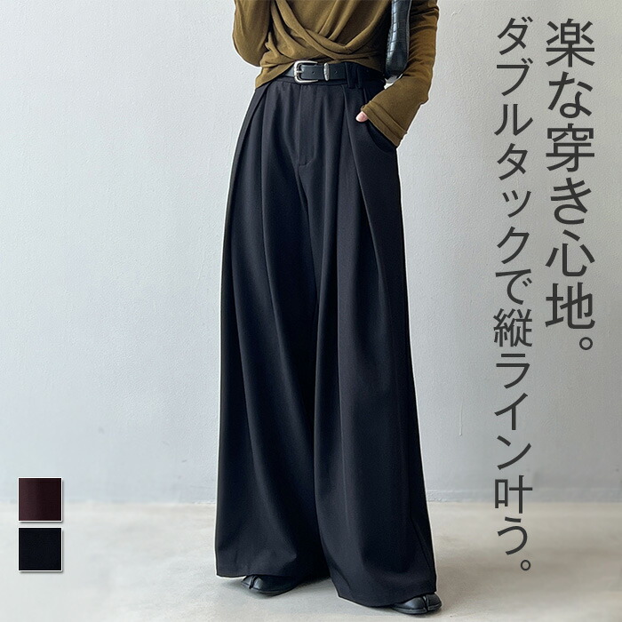 ワイドパンツ タックパンツ パンツ レディース ボトムス オフィスカジュアル ロング ワイド タック きれいめ 秋 冬 黒 無地 大きいサイズ