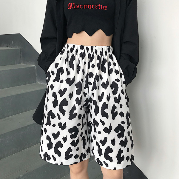 ハーフパンツ レオパード柄 ダルメシアン柄 ウエストゴム ボトムス ダンス 衣装 ヒップホップ コスチューム 韓国ファッション 個性的 服 原宿系 大きいサイズ