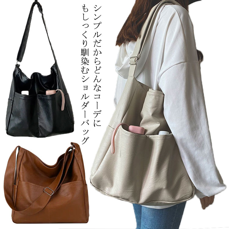 トートバッグ ショルダーバッグ レディース 無地 横型 フェイクレザー 軽量 軽い 鞄 カバン シンプル 肩がけ 斜めがけ 大きめ 通勤バッグ 秋 冬 女性 通勤 通学