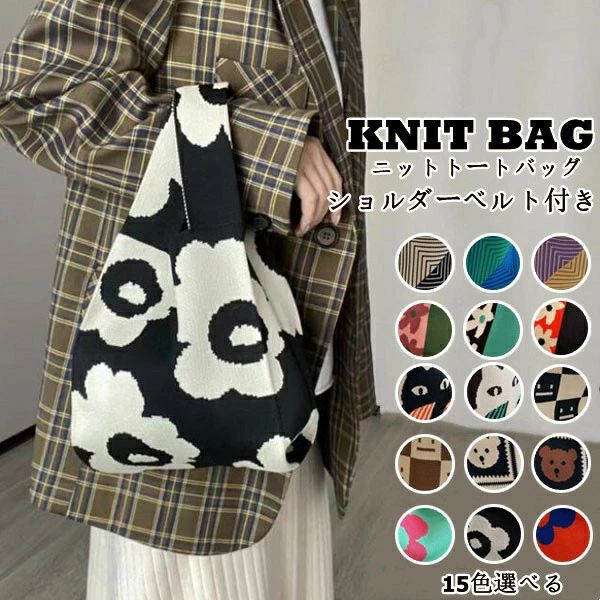 バッグ レディース ニットバッグ マルシェバック エコバック ニットトートバッグ かわいい 編みバッグ トートバッグ ミニバック トート サブバッグ マルシェトート ミニトートバッグ