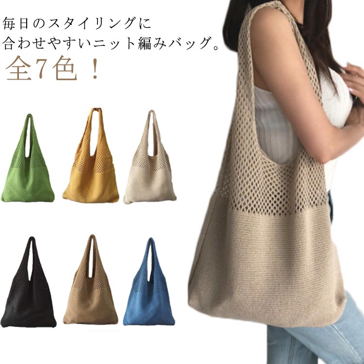 肩掛け トートバック バック ニット編み ショルダーバッグ ニットバッグ メッシュバッグ エコバッグ 全7色 かごバッグ 夏バッグ カジュアル 2way バッグ ハンドバッグ 手がけ
