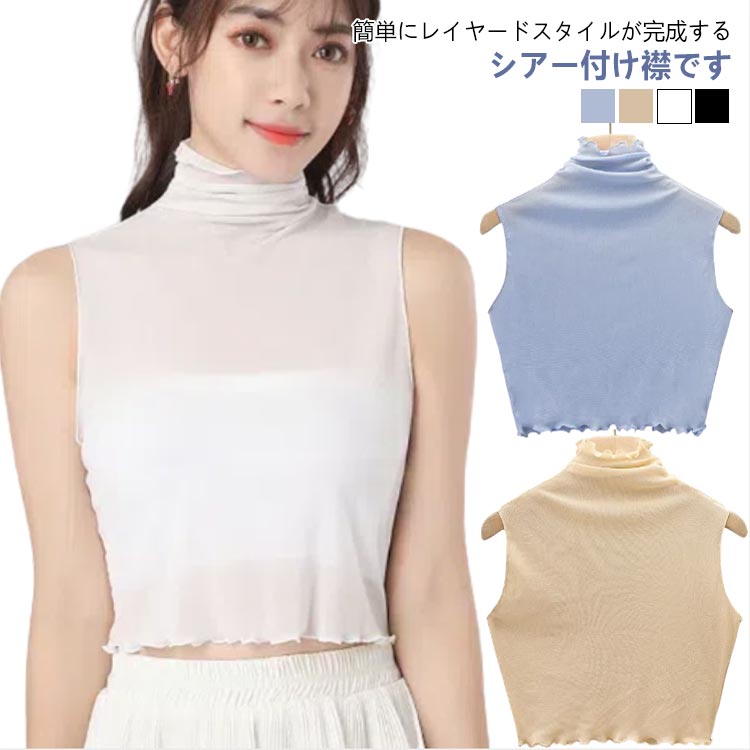 ノースリーブ 付け襟 OL トップス 紫外線対策 タートル 春 夏 2点セット ハイネック つけ襟 シースルー インナー カットソー つけえり 重ね着 レディース メッシュ 冷え対策 通学 レイヤード