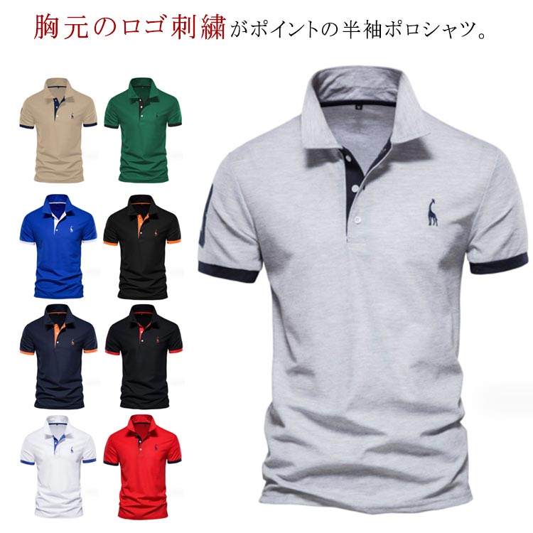 ゴルフシャツ メンズ 半袖 刺繍 ポロシャツ 配色 ゴルフウェア スポーツウェア 男性用 父の日ギフト プレゼント 大きいサイズ