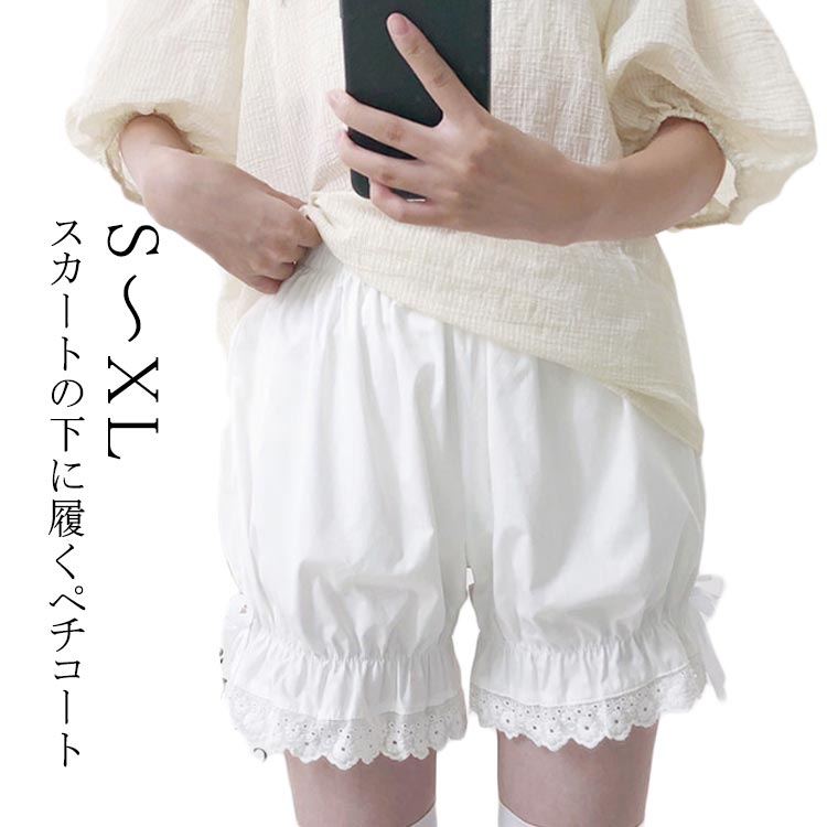 肌着 インナー 下着 ボトムス ロリータ コスプレ衣装 フリル かぼちゃパンツ ペチコート ショート レディース 見せパン かわいい 透け防止 ウエストゴム 可愛い ペチパンツ コスプレ 無地