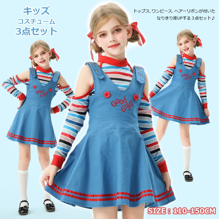 3点セット ハロウィン衣装 チャッキー 仮装 ワンピース 変装 ハロウィン 可愛い コスプレ 子供 ドレス 文化祭 女の子 コスチューム キッズ おもしろ 幼稚園 魔女 小学生 子供服 ハロウィン服