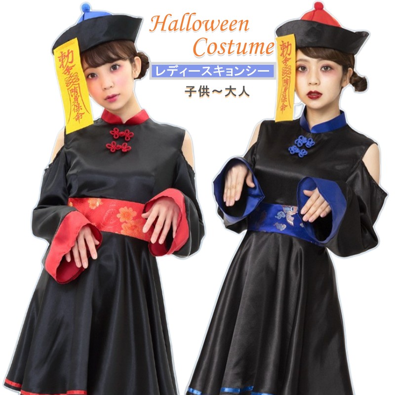 ワンピース キョンシー ゾンビ ハロウィン衣装 レディース コスプレ 可愛い 女子 大人 仮装 ハロウィーン チャイナ服 中国 子ども コスチューム おもしろ かわいい Hallow サテン