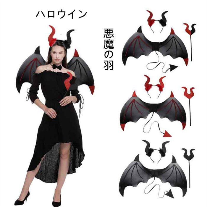 羽 ハロウィン 仮装 コスチューム 3点セット 翼 エンジェル 天使 妖精 カチューシャ 悪魔の棒 可愛い 小悪魔 仮装 学園祭