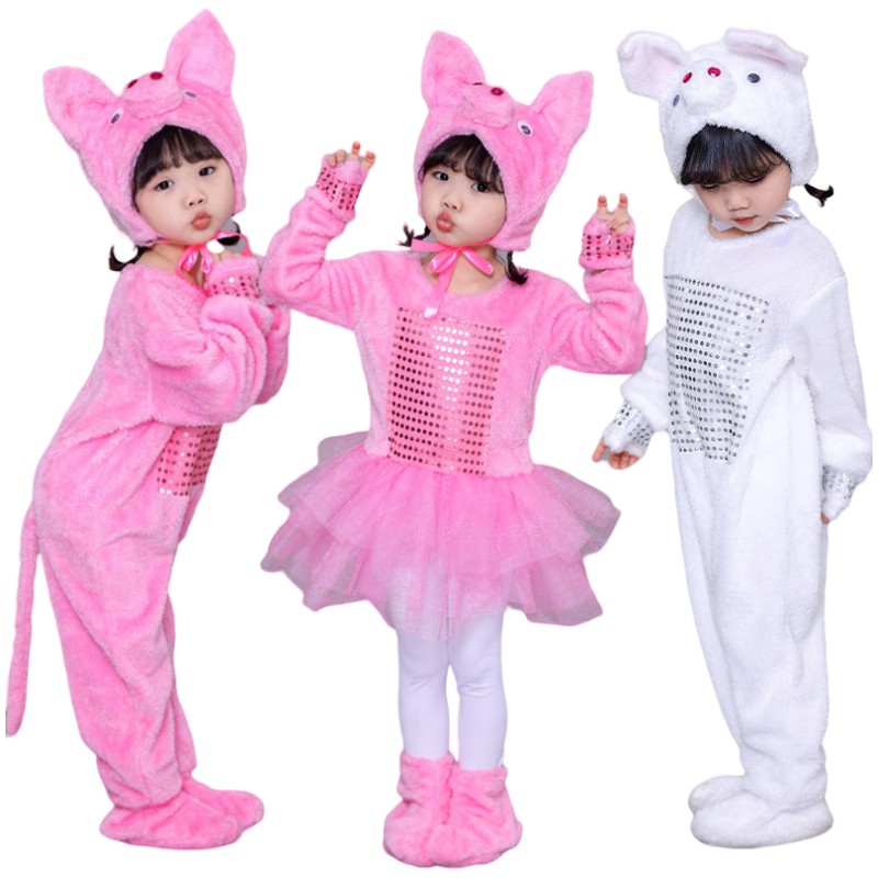 動物着ぐるみ 子豚 オオカミ コスチューム 変装 子供服 なりきり 仮装 コスプレ キッズ 演劇 可愛い コスプレ衣装 グレー ピンク ホワイト パーティー イベント 発表会