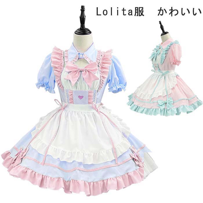 メイド服 コスプレ 衣装 仮装 女装 フリル ロリータ かわいい ワンピース エプロン 可愛い ウェイトレス メイド 服 萌え萌え レディース コスチューム イベント ハロウィ ロリータドレス