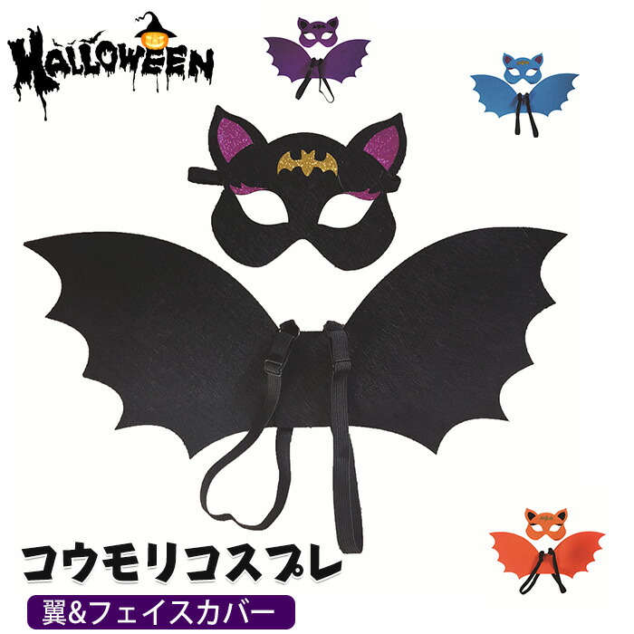 2点セット ハロウィン コウモリコスチューム コウモリの翼 フェイスカバー コウモリの衣装 コウモリコスチューム アクセサリー コウモリマスク