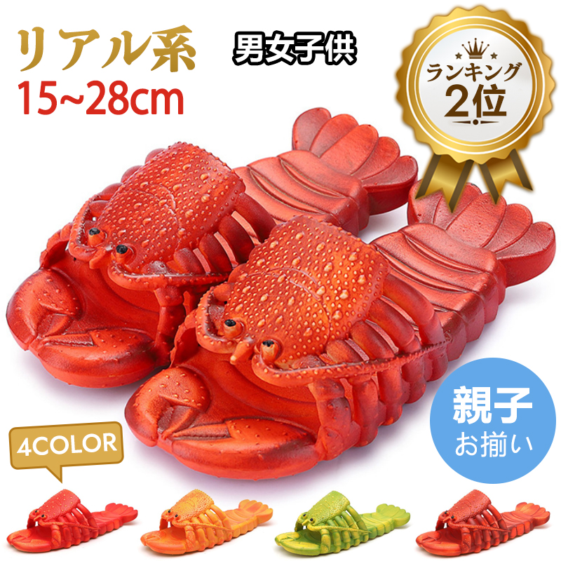 サンダル ユニーク 親子お揃い エビ柄 えび靴 蝦サンダル リアル スリッパ ロブスター エビ ザリガニ 伊勢海老 海老 蝦 えび メンズ レディース キッズ 個性的 ビーチサンダル 海水浴 男女兼用
