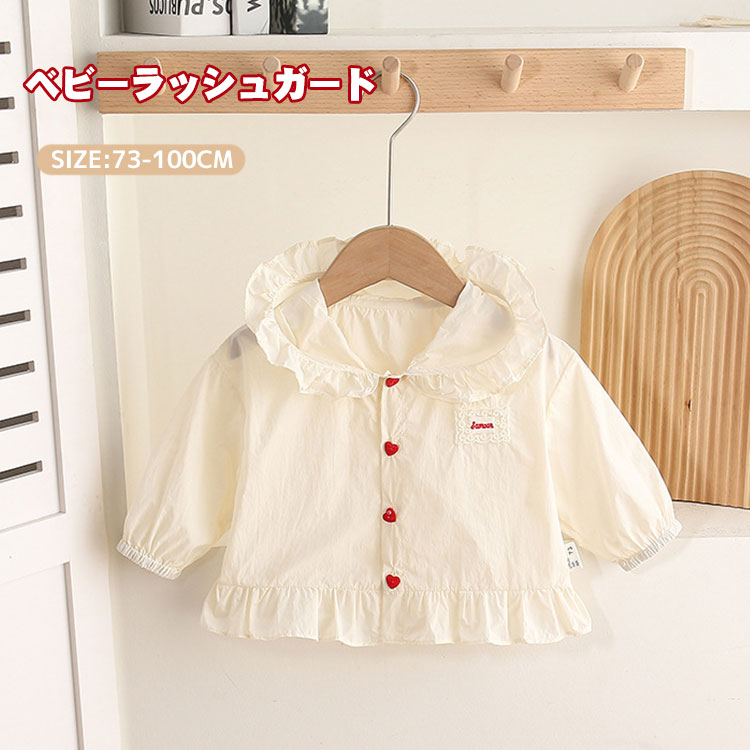 ベビー ラッシュガード キッズ 女の子 長袖 フリル フード付き 薄手 UVパーカー ラッシュパーカー UVカット 日よけ 冷房対策 子供服 トップス 薄いコート 旅行 海 水遊び 夏 可愛い プール