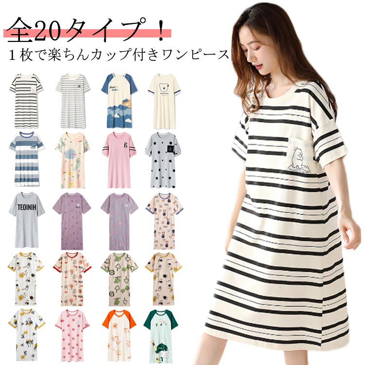 カップ付き ルームウェア 夏 半袖 ワンピース パジャマ 部屋着 ナイトウェア 寝巻き