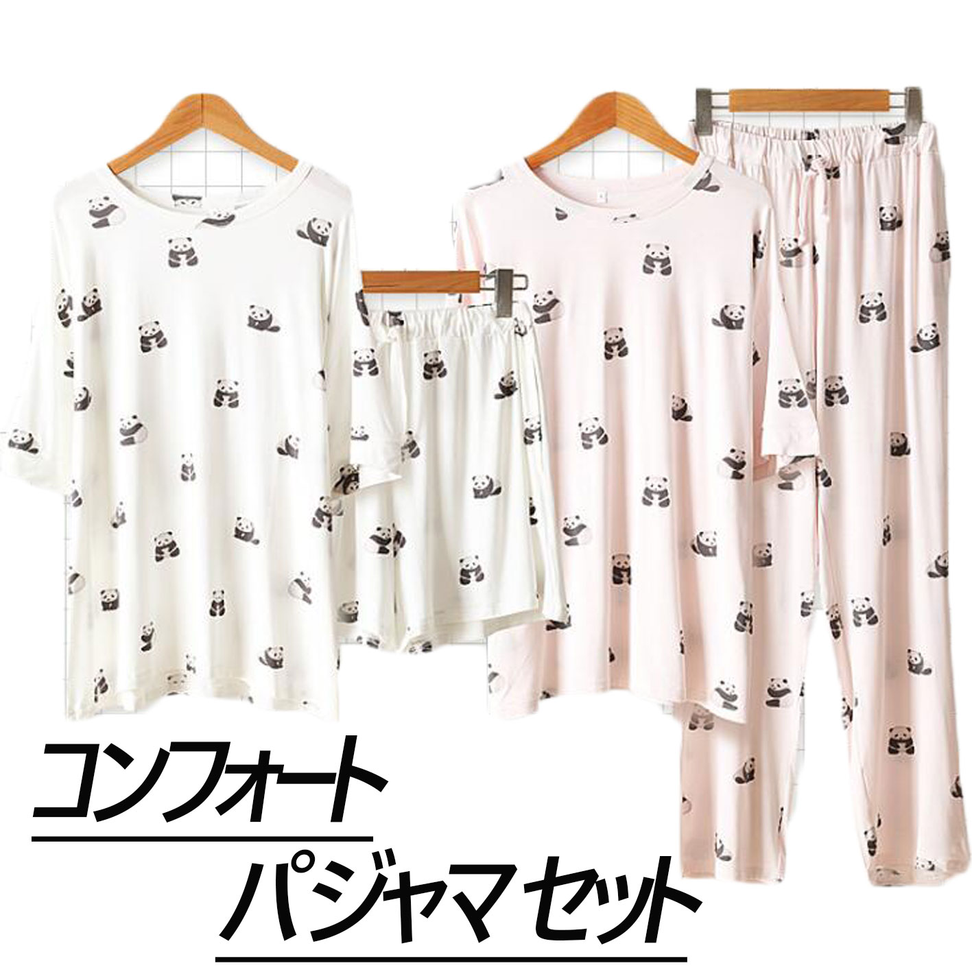 レディースパジャマ 上下セット モダールパジャマ パンダ柄 可愛いルームウェア 半袖 ナイトウエア 部屋着セット クールネック ふんわり ゆったり 涼しい 春夏 入院 産後