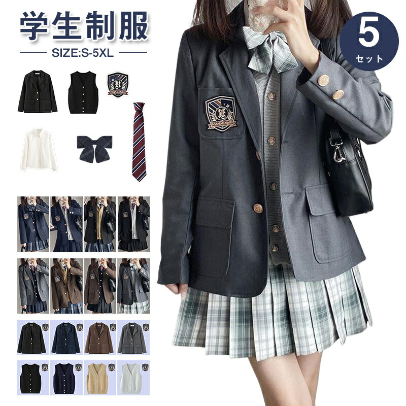 学生服 5点セット スーツ 制服 セット 卒業式 女の子 ブレザー 女子 韓国 卒服 JK 高校生 中学生 入学式 スーツセット フォーマルスーツ 6点 ジャケット ベスト ブラウス スカート