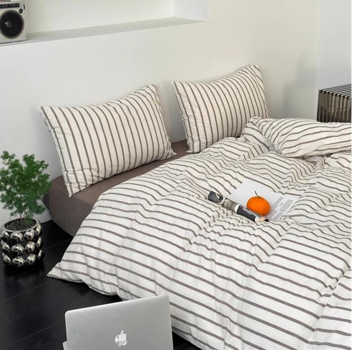 布団カバーセット ストライプ ブラウン 北欧 レトロ 綿100% 掛ふとんカバー3点セット 4点セット シングル ダブル クイーン ボックスシーツ フラットシーツ 柔らか 掛け布団カバー 枕カ 通気性