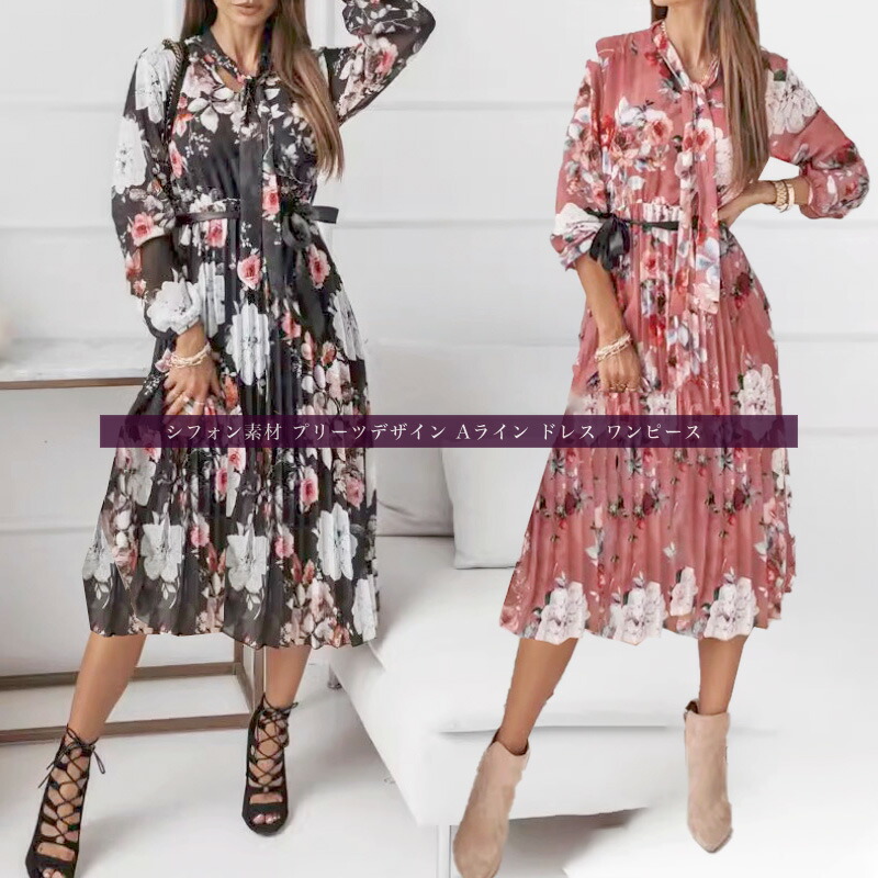 プリーツワンピース 結婚式 ロングワンピース シフォンワンピース 長袖 ワンピース きれいめ マキシ丈ワンピース ロングドレス オフィス パーティードレス 秋 冬 春 夏 上品 細見え フォーマ 大人