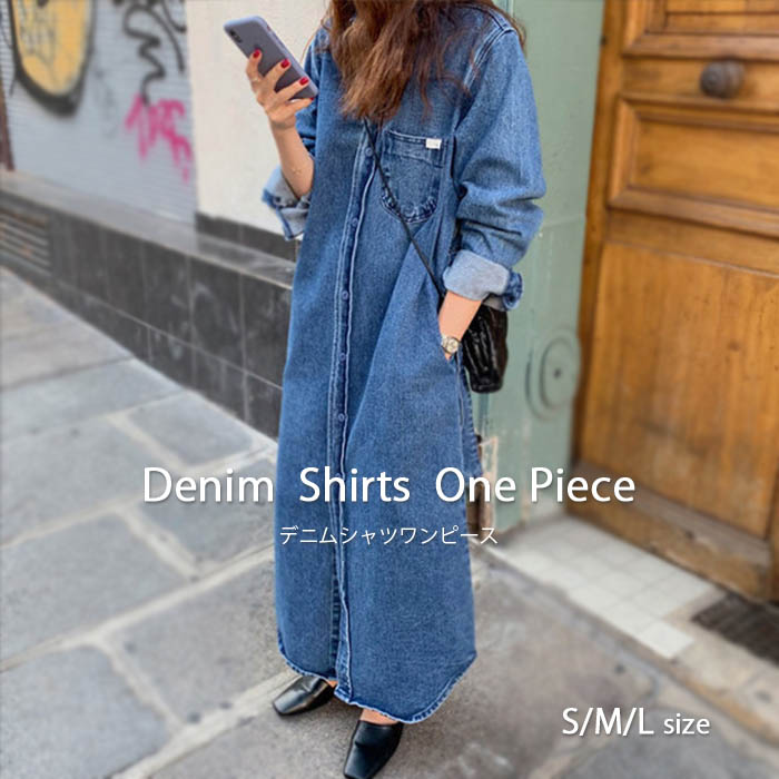 デニムワンピース ロング丈 デニムシャツワンピース シャツワンピース レディース 女性 羽織る ワンピ シャツワンピ オシャレ