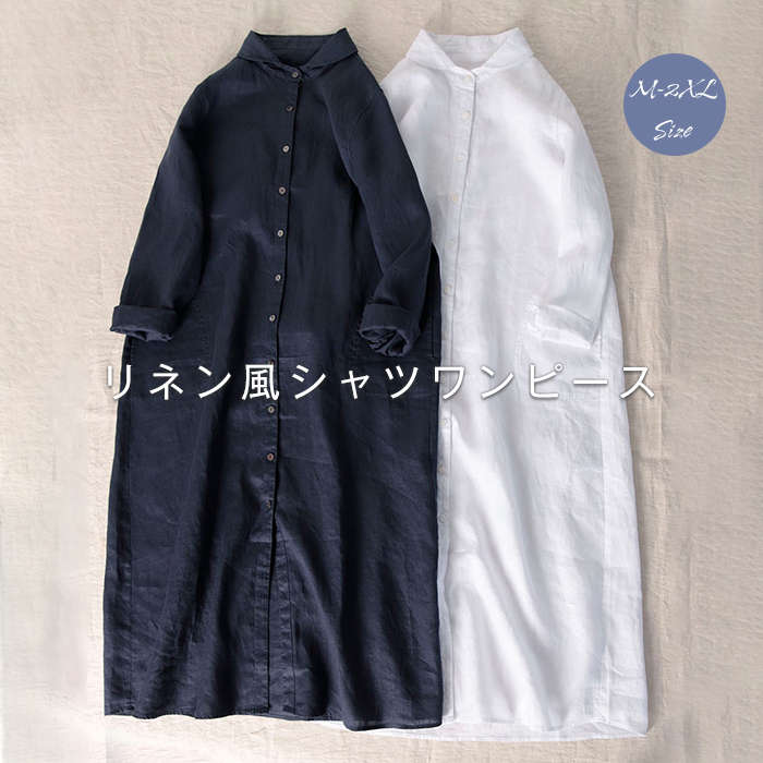 シャツワンピース 夏 リネンワンピース レディース ロングシャツ 半袖ワンピース コットンリネン 快適 ワンピース 半袖 ミモレ丈 シャツワンピ オフィス 無地 綿麻 ロング丈シャツワン ロングワンピ