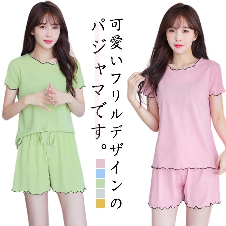 M-5XL ルームウェア 上下 セットアップ 夏用 タンクトップ ショートパンツ 冷感 レディース 部屋着 パジャマ フリル 可愛い 韓国ファッション 寝間着