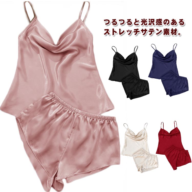 ルームウエア インナー ナイトウェア 涼しい レディース サテン パジャマ 薄手 ランジェリー 部屋着 ショートパンツ 上下セット 無地 可愛い 寝巻き キャミソール 女性